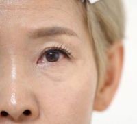 ●目もと:眉尻の下に白いハイライトやパールがギラギラしたアイカラーを乗せる方法は、昔ながらの古い塗り方です。これだと、陰影がはっきりしすぎて、たるんだ目元やシワを目立たせてしまうおそれがあります。またアイラインの目尻の跳ね上げも、目尻のたるみを強調してしまいます。