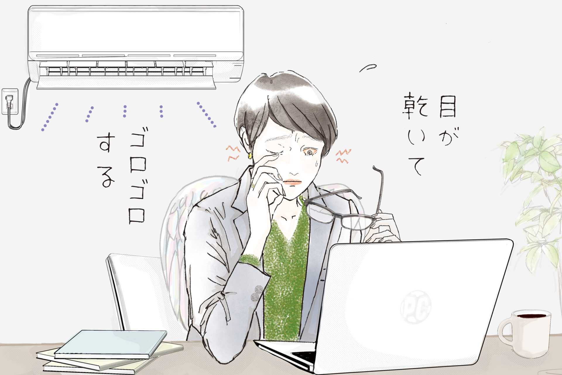 ●エアコンを強くかけている部屋で、長時間パソコンやスマホを見る