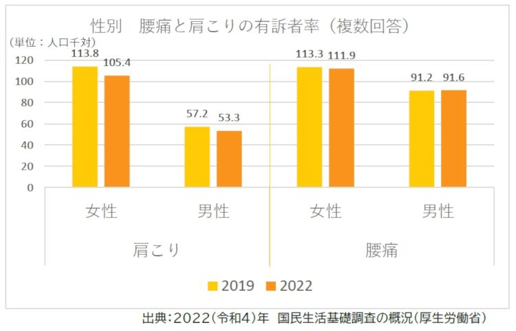 寺内 厚生労働省の2022年の調査※3によると、男女ともに、1位は「腰痛」、2位は「肩こり」です。