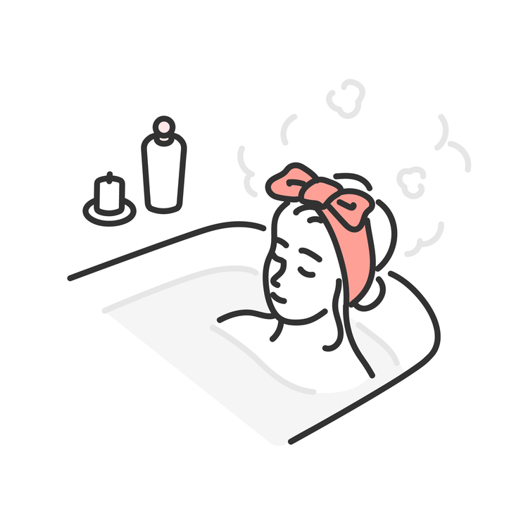 肩こりや腰痛がある場所を温めるセルフケアも有効です。温かい湯船につかると血流が良くなり、コリや痛みにつながる体内の老廃物や疲労物質が排出されやすくなります。また、水圧で血管がほどよく圧迫され、リンパの流れも良くなります。そして、浮力が働くことで体重が約10分の1になり、筋肉や関節の緊張がほぐれてリラックスできます。お湯の温度は体への負担が少ない41℃以下に、10分以内を目安につかりましょう。お湯につかりながら、優しくマッサージするのもおすすめです。